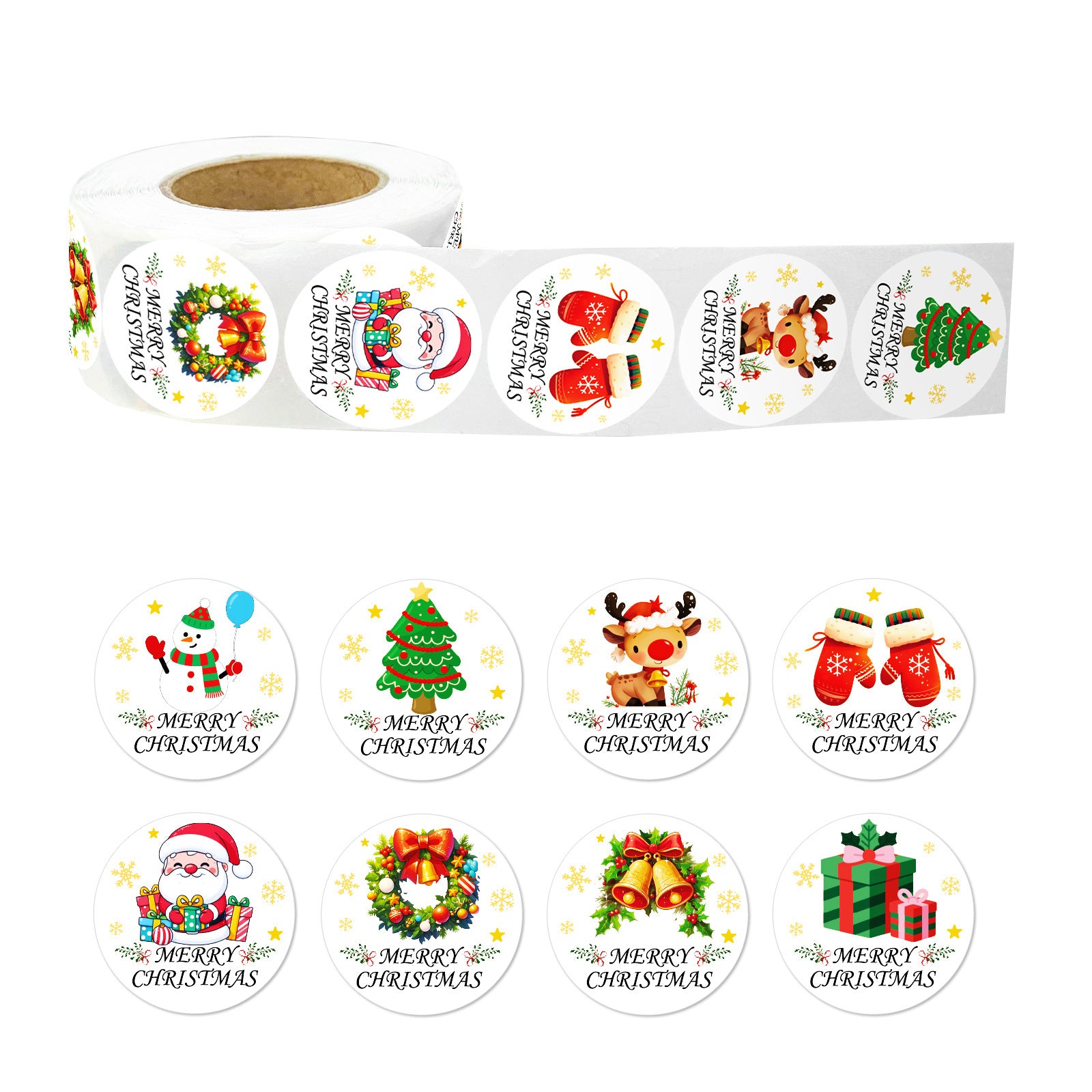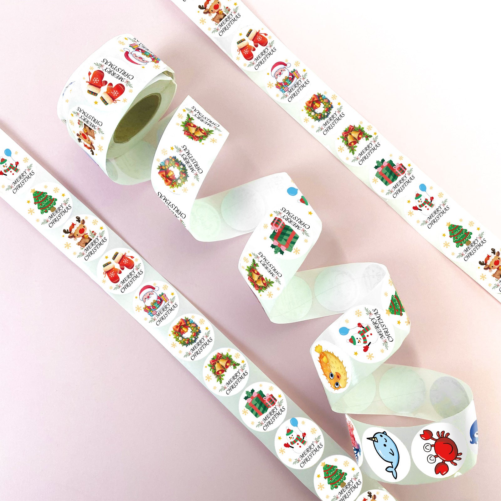 Spread holiday cheer with this massive roll of 500 adorable Christmas stickers! Featuring charming designs including Santa, reindeer, Christmas trees, wreaths, presents, and festive greetings like 'Merry Christmas' - perfect for all your holiday crafting and decorating needs.