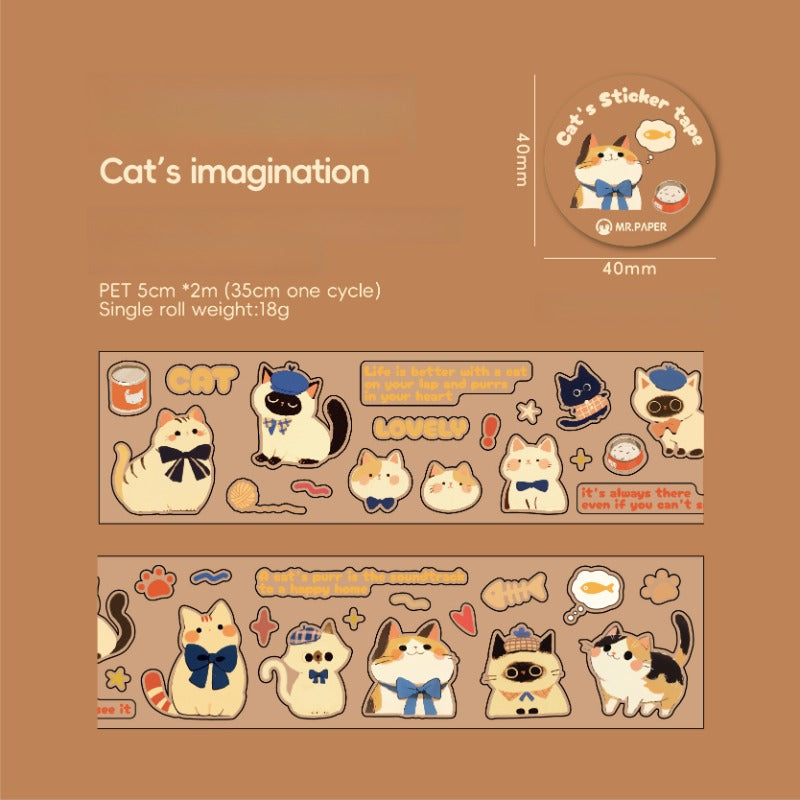 Kawaii Cat Washi Tape - Cat's Imagination Animal Theme